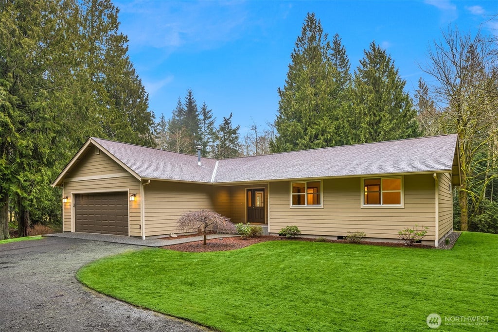 This immaculate one level home on acreage lives like new. Lovingly cared for, you will appreciate the serene and private woodland setting with ample room for gardening and outbuildings. Tidy and turn key, this home features vaulted ceilings and a cozy free standing stove in the great room, a generous primary suite and a newer deck overlooking the tranquil property. Fresh paint and new carpet, this home has been lightly lived in, you get to turn the front door key and start enjoying this special spot right away. A terrific opportunity to have some elbow room while also being close to Kingston amenities and quick ferry access. A true gem on a gorgeous piece of property.