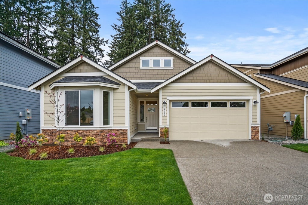 Rob Rice Homes presents the Pine Plan in Skyview Estates! The main level offers the primary suite, two add'l bedrooms, and a full bath, while the upper level boasts a versatile secondary suite with a bedroom, bonus room, and full bath. The kitchen impresses with quartz countertops, a full tile backsplash, "Cocoa" Maple shaker cabinets, and a gas range with double oven. Highlights include quartz counters throughout the home and engineered hardwood in the entry, kitchen, and dining area. Enjoy the covered patio, privacy fenced yard, & fully landscaped. Energy-saving features include solar panels, a heat pump, & an electric hybrid water heater. Prime Tumwater location, close to schools & shopping.