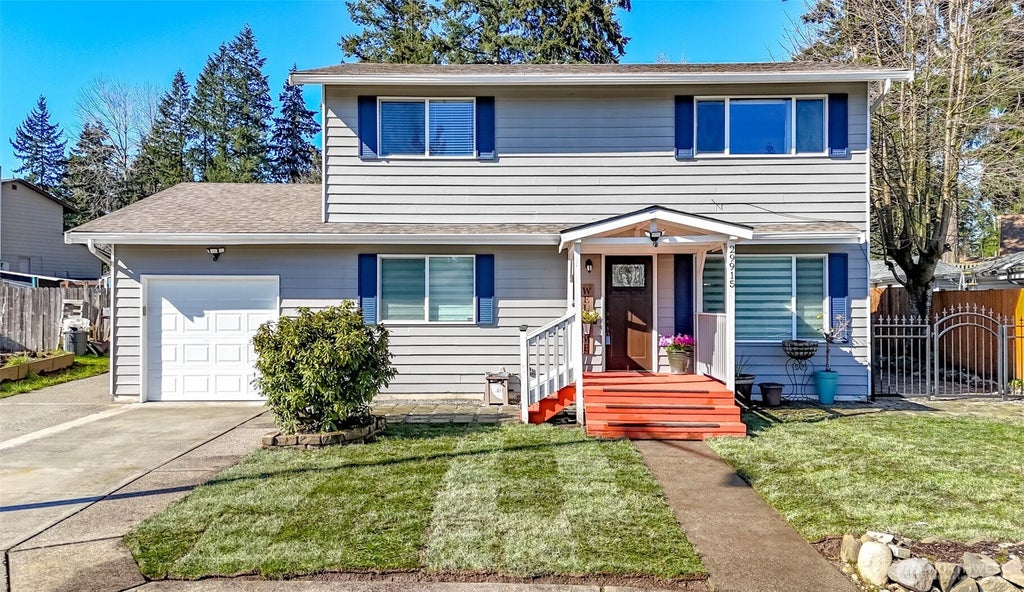 Come & See this exquisite updated 4-beds, 1.75-bath home with a family room/bonus room that could serve as a main-floor master or bedroom if needed or guest room. It has beautiful hardwood laminate and tile floors. The updated kitchen boasts, stainless steel appliances, gray cabinetry, sparkling white quartz countertops with lots of work and storage space. The house has lovely living and dining areas, as well as a private second-story morning coffee covered deck, a park-like backyard with firepit area, fully fenced & entertaining 500-square-foot cedar deck. New front yard sod, driving access to the back with room for a garage/shop. The one car garage has 2nd washer/dryer, utility room, heated office or work from home space plus storage.