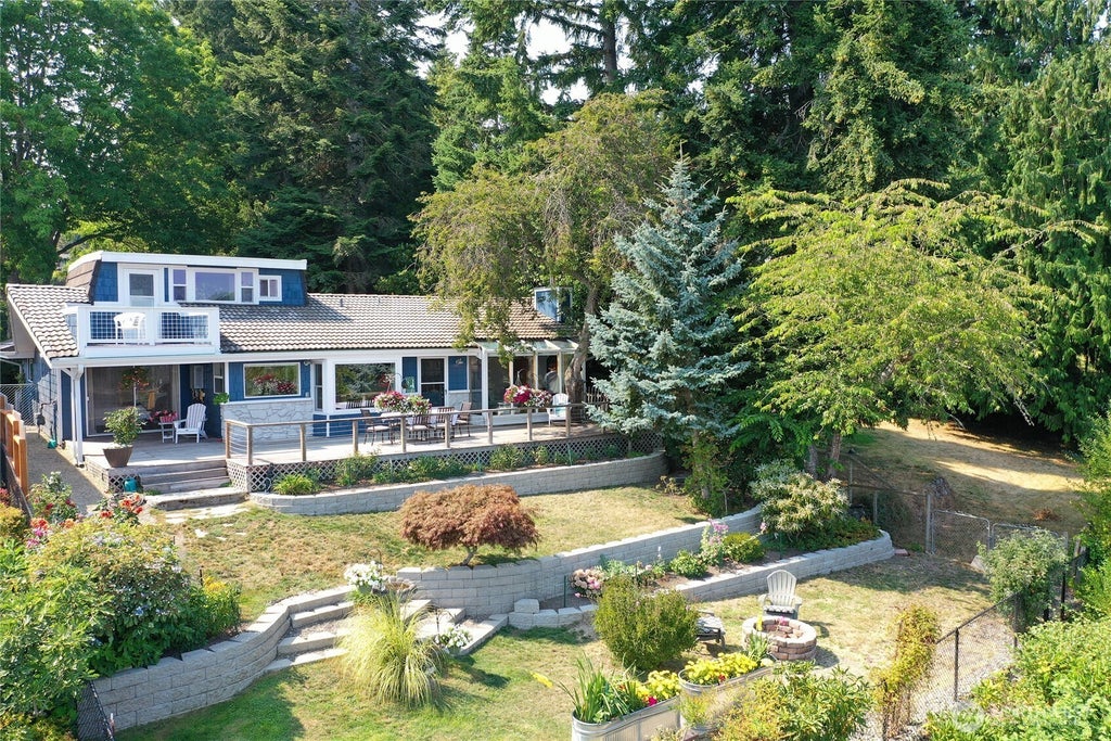 This charming view home has been extensively remodeled with classic Scandinavian flair. Offering the ease of one-level living-3 bedrooms and 2 baths on the main floor. A bonus flex space upstairs has a 3/4 bath and private view deck. You'll love waking up to sunrises over Mt. Rainier and the charm of WA ferries cruising through Rich Passage. Located next to Illahee State Park on a quiet .65 acre lot, you’ve got it all right here. Lace up your walking shoes and enjoy miles of park trails, a sandy beach & boat launch. You can’t miss the IMPRESSIVE SHOP-3,200 sf w/ 4 roll-up doors & metered electrical service added in 2021. New development rules inside UGA may allow for ADU permitting. Welcome home…and bring ALL your hobbies and toys!