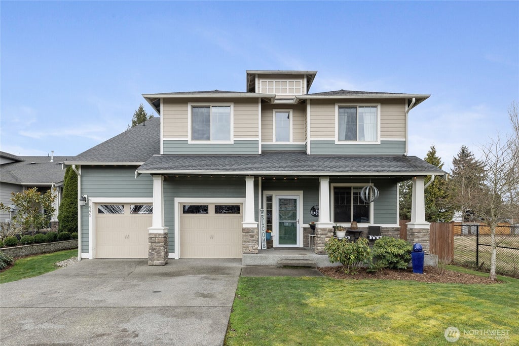Welcome home! This move-in ready home is just waiting for you to fall in love. The beautiful open kitchen with a huge breakfast bar flows to the dining area and the large living room with herringbone hardwood floors flowing throughout. Easily step outside into the fully fenced private backyard that overlooks the greenspace next door. Office and half bath are on the main floor, with 4 bedrooms and 2 full bathrooms in the spacious upstairs! Enjoy vaulted ceilings and a great loft upstairs for exercise, gaming, or watching movies! 3 car garage with room for all of your toys or projects! Close to shopping and schools and all that Downtown Puyallup has to offer!