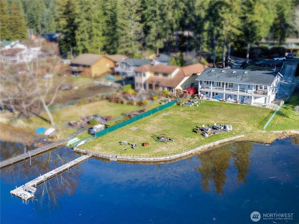 Sweeping views of Wildcat Lake & Olympic Mtns in 2800 sf of no-bank waterfront w/ coveted western exposure. Enjoy the best of NW living in this turn-key home, complete w/ elevator & private dock, perfect for kayaking & fishing in the stocked trout lake. Main level w/ hardwood floors, custom kitchen (w/ quartz counters & SS) opens to LR w/ views of the Lake. Primary suite has custom walk-in closet & Lake views & just steps to hot tub. Downstairs enjoy the Family Rm w/ cozy fireplace & kitchenette, perfect for guests + den + much more. Storage everywhere & AC too! Don't miss the 3-car garage w/ "pass through" bay making launching your kayak easy. Enjoy sunsets on your private dock or by the campfire steps to the Lake. Just 8 minutes to Hwy 3!