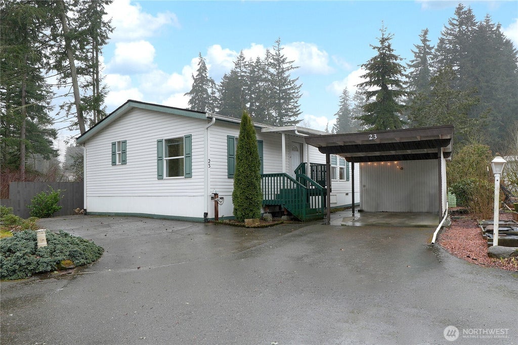 Welcome to the popular Canyon Terrace, a 55+ community in Puyallup's Summit area. This private 3-bedroom,1.75-bath home features BRAND NEW carpet, vaulted ceilings, and a light-filled layout. A spacious kitchen offers a new range,S/S appliances, oak cabinets, and a breakfast nook, while the formal dining and living rooms are perfect for gatherings. The primary suite includes a large separate shower, and the covered back deck & raised garden beds provides year-round outdoor enjoyment. Heat pump for comfort, utility room with newer W/D & freezer. Blinds included. This home blends comfort and convenience. Near freeway,shopping & medical facilities. Small pets ok. RV parking extra. Own the home and lease the land. Low maintence quiet living.