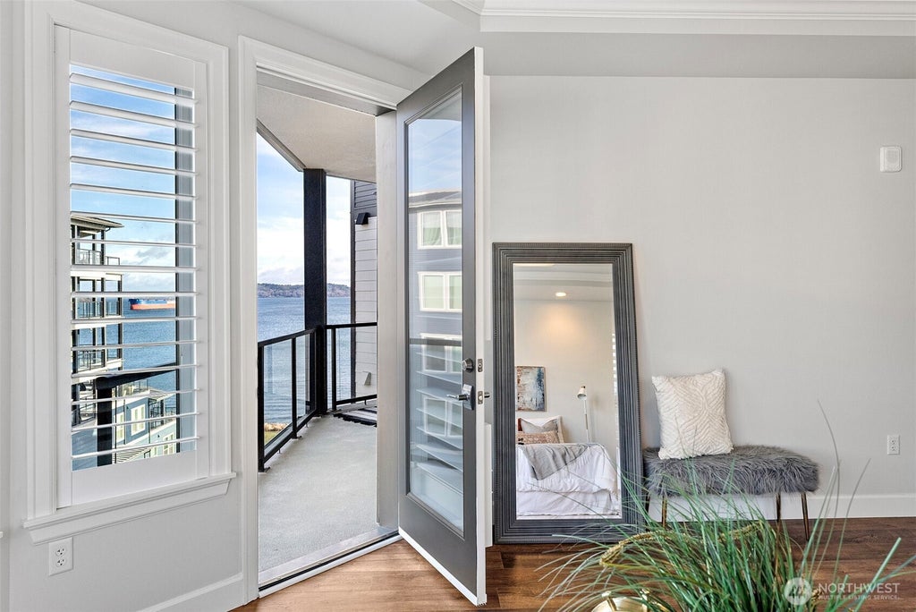 Discover modern living in this stunning 3-bedroom, 2-bath condo. Manufactured hardwood floors flow through the living room and bedrooms, creating a polished, cohesive look. The open floor plan is bright and airy, with custom window coverings adding privacy. The kitchen features Quartz countertops, a chic backsplash, Bosch appliances, and a breakfast bar, perfect for entertaining. The primary suite boasts a spa-like bath, walk-in closet, and private deck with partial Puget Sound views. Two additional bedrooms share a second deck, ideal for relaxation. A guest bath, utility room, two parking spaces, and storage add convenience. Situated in vibrant Point Ruston, this home delivers the ultimate waterfront lifestyle.