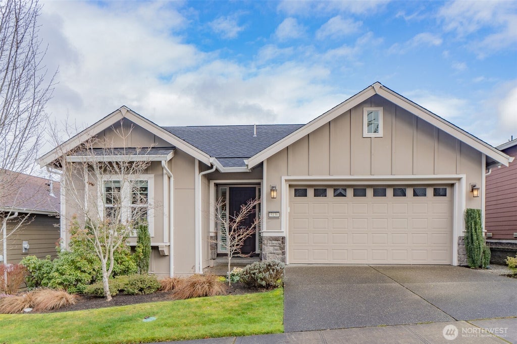 This gorgeous home is located in the active 55+ community of Jubilee. It has a large, bright entryway, a split bedroom design, a separate den space, a bonus smart space/office or hobby room off the mudroom, and an open-concept living area. Cozy up to the gas fireplace, or spend time in your chef's kitchen with a generous island and tons of storage. The primary bedroom features an ensuite bath w/ tile shower, and a large walk-in closet. Enjoy the birds that call this home from your large rear-covered patio, low-maintenance yard, and fully fenced backyard. The community lodge offers numerous activities, plus trails and a sports court. Just a hop, skip, and jump to shopping and dining!