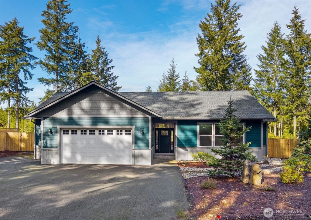 Northwest best living at Alderbrook Golf & Yacht Club! Enjoy a relaxing forested backdrop from this 3 BR/2.5BA custom ranch built in 2020, that checks off all your wants & needs, and is perfect for entertaining. High ceilings thru, acacia hardwoods, granite kitchen w/island and lg. buffet, freestanding propane fireplace, x-large windows bring the outside in, lg. covered patio, and an easy-care fully landscaped & fenced, pet-ready yard w/sprinkler system! Primary BR has 5-piece bath, x-large walk-in plus 2nd closet. Large 3rd BR can be flex space or family room w/2 closets—lots of storage throughout. Spacious 2-car garage has golf cart door! HOA includes unlimited golf for owners, tennis, gardens, trails, parks, clubhouse, and more!