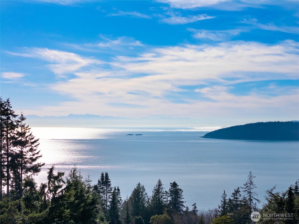 Stunning views from this spacious main level living home in The Pointe. Grand entry welcomes guests w/panoramic views of the Olympic Mountains & the Strait of Juan de Fuca, opening into dining space w/butler bar & sunken living room w/fireplace. Kitchen is light & bright with a cheerful breakfast nook. Primary suite w/cozy fireplace & 5-piece bath enjoys breathtaking views & access to the expansive deck. Utility room & double car garage offer plenty of hobby space & storage. Huge, light filled home office/studio space w/private entrance rounds out the main level. Downstairs two additional lg suites & a built-in library open onto a second deck. Savor sunset & moonrise from every level in this tranquil setting just minutes from downtown.