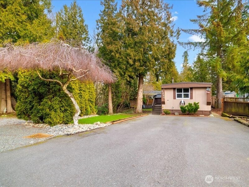 MUST SEE! Birch Bay Village Gem! This 2 Bdrm,1 bath manufactured home on an 8200+ Sq/Ft meticulously landscaped secluded lot beside a 60 foot greenbelt with trees, and private RV parking. The Manufactured home is in great shape with a newer roof, wood free standing stove, newer vinyl windows, new back porch decking, newer exterior paint, freshly painted interior, lovely wooden storage shed. EV Charger installed (2K value) If you want peace & quiet plus privacy look no further! Come enjoy the BBV amenities which include a nine-hole executive style golf course, marina, pool, clubhouse, saltwater parks, 2 private lakes, quiet roads and 24 hour manned gated security. Call LA for financing information. Best value in Birch Bay Village!