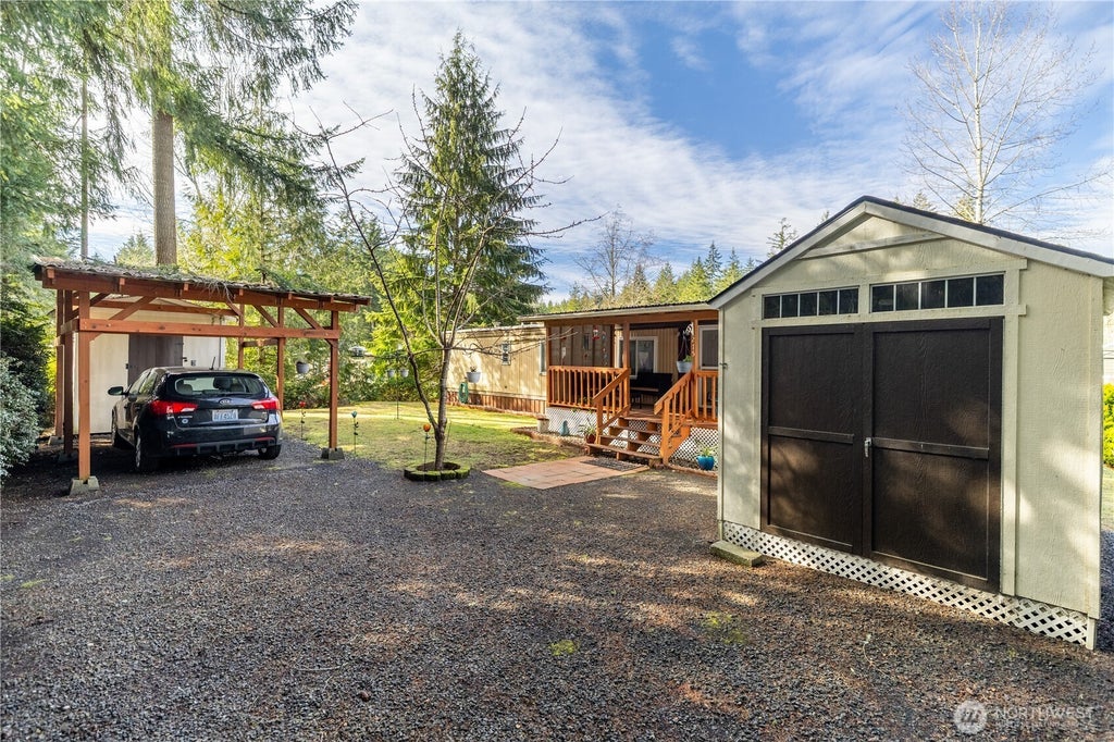 This beautifully updated, well-maintained, single-wide mobile home sits on a generous 0.34-acre lot, featuring 2-bdrm,3/4 bath, a spacious kitchen, updated counters, flooring, and so much more. For those seeking comfort and tranquility, this incredible property includes outbuildings for storage or a workshop, covered parking, beautiful, landscaped grounds provide ample space for outdoor activities and relaxation, private community access to a motorized lake stocked with trout, perfect for fishing, boating, or simply enjoying a day on the water, leisurely walks, and scenic views. Whether you're entertaining guests or enjoying a quiet evening at home, this property offers everything you need and more.
