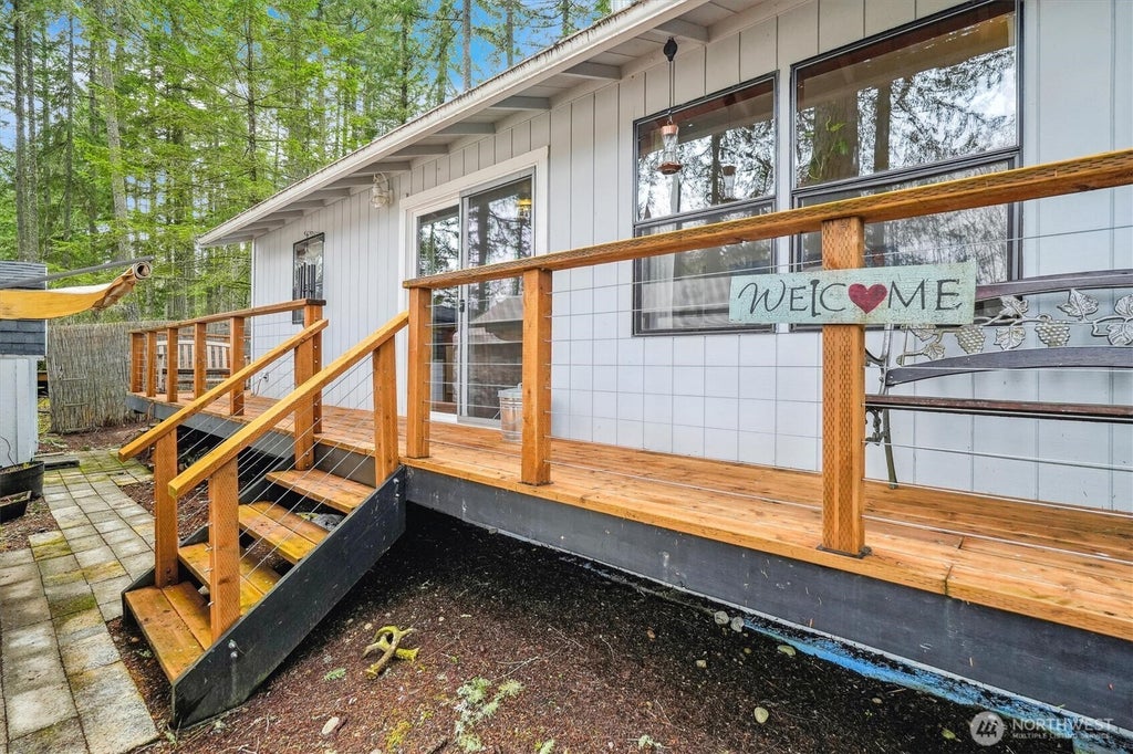 Escape to tranquility in this delightful cottage in the woods! Enjoy unparalleled privacy in this serene location set against the backdrop of a quiet driving range greenbelt. This 2 bd 1 bth home has been lovingly cared for with recent upgrades to electrical, flooring, ext/int paint, lighting, & more. You will appreciate the sturdy wraparound deck from which to take in the abundant wildlife & birdsong & evenings spent around the fire pit. The 10x12 storage shed with new roof is an added bonus! Wanting even more privacy? A second .22 acre parcel with addt'l outbuilding and 1-bed septic system, water & power in place is also available for purchase! Perfect for RV hookups for your guests. Great STR opportunity or full-time retreat: view today!