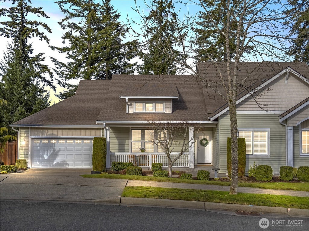 Tucked away in the community of Northwest Landing, this 1-level paired home is uniquely situated w/mountain views & a peek-a-boo view of the Sound. With 2,072 sq.ft. of beautifully appointed living space, this 3-bedroom, 2-bath gem offers the perfect blend of comfort & elegance. Inside, you’ll find soaring vaulted ceilings, extensive wood flooring, white millwork & a cozy gas fireplace. The gourmet kitchen is a chef's dream, & the spacious primary bedroom w/ensuite features French doors opening to the serene back deck. The oversized garage completes the picture w/built-in storage units, providing plenty of space for all your gear. Just minutes away from JBLM, amenities & The Home Course. Don't miss the chance to make this your forever home!