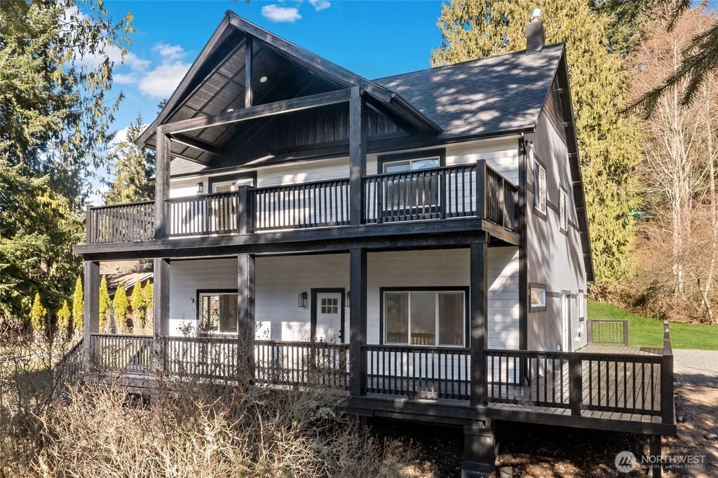 Stunning fully updated 2-story home with panoramic views. Fall in love with the open floor plan & designer finishes throughout. Cozy living room with wood burning fireplace & open to kitchen. Custom Kitchen has NEW cabinets, quartz countertops, tiled surround, stainless-steel appl & island. Home features 2 primary bedrooms on main & 2nd floor. Primary on main has a electric fire place insert, walk-in closet & private bath with NEW double vanity sink & shower. Upstairs primary exhibits spectacular views with access to deck & features new private bath. 2nd floor also comes with 2 additional rooms & bath. Additional updates include NEW paint, millwork, doors, flooring, roof + more. Outside is perfect for entertaining with 2 wrap around decks.