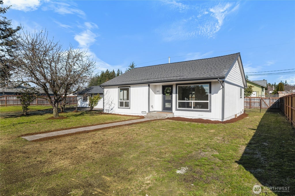 Discover this beautifully remodeled rambler 2-bedroom, 1.75-bath home in a peaceful Shelton neighborhood! Situated on two spacious lots, this home offers a detached two-car garage, a fully fenced backyard, and stunning modern updates throughout. Step inside to find luxury vinyl plank flooring, high-end finishes, and large windows that fill the home with natural light. The open-concept kitchen boasts white shaker soft-close cabinets, quartz countertops, and stainless steel appliances, while the bathrooms feature elegant upgrades for a luxurious feel. A brand-new water heater and large utility room add convenience and efficiency. Enjoy the quiet street just minutes from Callanan Park, Shelton Memorial Park, and Highway 101.