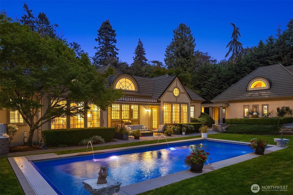 European grandeur on a private 2-acres in Woodway. This over 8,000 sf estate showcases castle-inspired craftsmanship. Soaring 18-ft ceilings & abundant floor-to-ceiling windows amplify the spaciousness. Designed for grand entertaining w/ multiple outdoor gathering areas & pool that create an epic setting. Generous main-flr primary suite w/ dual WIC, 5-piece bath & trompe l'oeil mural. Slate-tiled halls lead to gourmet kitchen featuring Carrera marble, custom Viking, & SubZero. Luxurious formal & informal spaces. Lower level offers entertainment lounge w/ bar, billiards, fully-equipped theater, & expansive wine cellar. Gym. Library. Whimsy & modern glam woven throughout. Detached 3-bay carriage house w/ MIL unit, all secured w/ gated entry.
