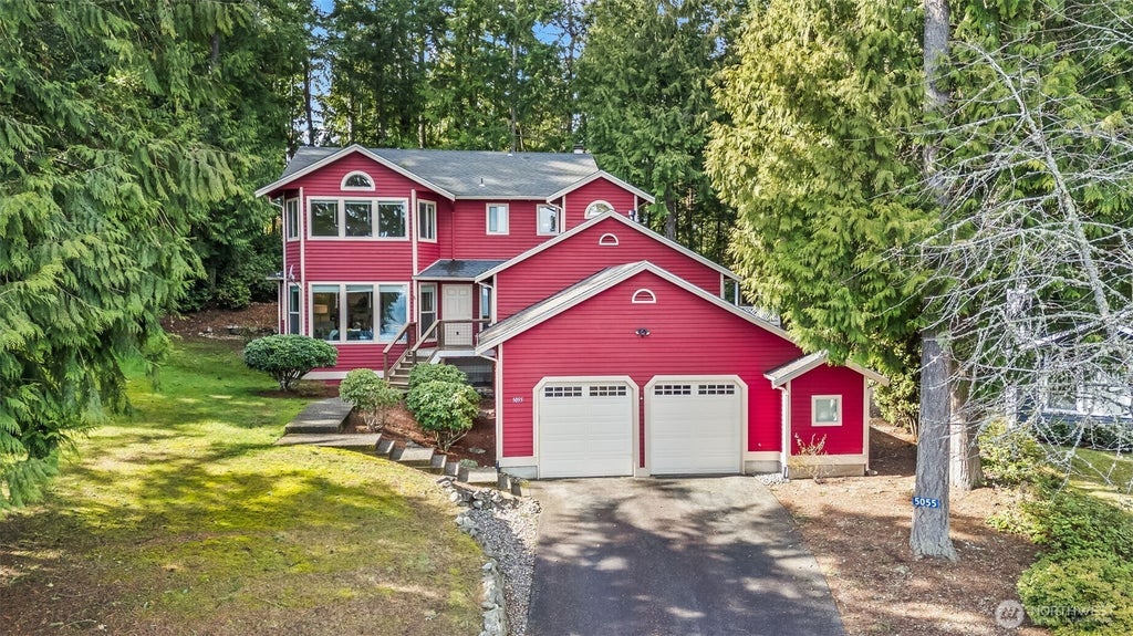 Stunning water views of Dyes Inlet from this beautifully updated home in a quiet cul-de-sac. Charming 3-bed, 2.25-bath home has 2092 sqft. Living room features large windows that take advantage of the water view & provide natural light. Dedicated dining room leads to remodeled kitchen with all newer SS appliances. Cozy family room has wood fireplace & skylights. Bedrooms are upstairs, plus loft has murphy bed for guests! Primary suite is light & bright, highlighting the remarkable view, w/ generous walk-in closet & gorgeous bathroom. Enjoy the convenience of a completely renovated home~ newer roof, windows, flooring, kitchen, bathrooms, trim & paint! Private yard w/gazebo, located in the renowned CK School District & easy access to Hwy 3.