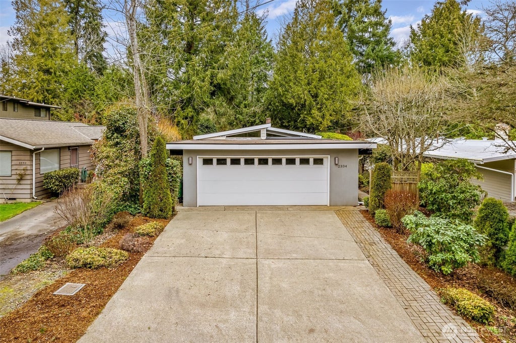 This very unique Mid-Century home in the desirable Wedgwood neighborhood offers a peaceful retreat with modern updates. Step into a freshly fully repainted inside, newly refinished real hardwoods and an open-concept main floor with vaulted ceilings. The top floor has beautiful natural light filtering in, a modern kitchen with stained concrete counters, a renovated bath, and an oversized master bedroom leading to a massive rear outside deck. Downstairs features new carpets, two bedrooms, a ¾ bath, family room, laundry, and storage. Just this week, a Mitsubishi heat pump with central AC was installed! Don't forget to enjoy the lush green rear property with babbling Willow Creek meandering by. Near award winning schools, parks and I-5 access.