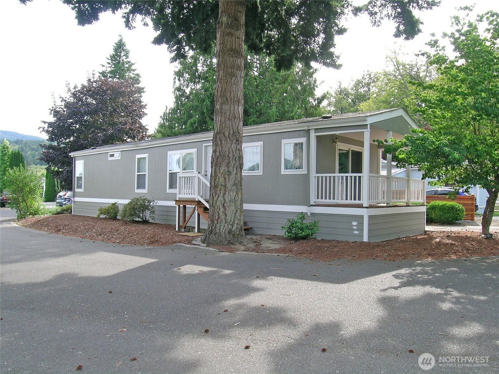 Ideal location in this highly sought after 55+ adult park. This home has had a complete remodel of the entire interior as well as outside now having hardi-plank and new composition pitched roof. Just everything making it an effective date of 2024. Covered carport for 2 autos plus a covered entry from parking to side door. 3 separate entry doors including one being a large front patio deck overseeing the open park area. One of the three open area parks has a private community lake access with covered cabana/gazebo and its own dock on Lake Samish. Easy access to Bellingham and Mt Vernon/Burlington (10 minutes max. to Fred Mayer and less to Fairhaven, etc.) .