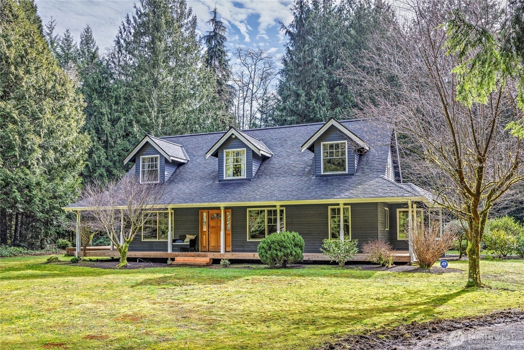 Tucked into 2.5 serene acres, this Craftsman retreat feels like home the moment you step onto the wrap-around porch. Inside, rich fir floors, bespoke millwork + cherry cabinetry set the tone for timeless beauty. The great room stuns w/ soaring ceilings, curved windows & a cozy wood stoves . The main-level primary suite is a true retreat offering a private deck + brand new spa-like ensuite & oversized walk-in closet. Upstairs, two dormered bedrooms, a spacious loft/ bonus room offer versatility. A detached 3-car garage with an unfinished loft invites endless possibilities. Just 10 minutes to the Kingston/Seattle fast ferry, downtown Kingston shops & restaurants + easy to Whitehorse Golf & Indianola. Privacy & convenience in perfect harmony.