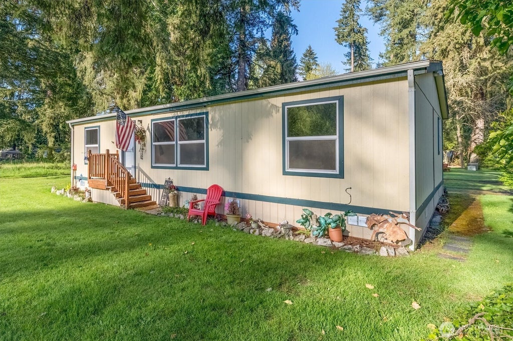 Well-maintained 1996 Fleetwood 3 bed, 2 bath double-wide in the peaceful 55+ Viking Village community in rural Castle Rock. Enjoy a forested, park-like setting with a brand new roof and move-in ready comfort. Features include a spacious primary suite with walk-in closet and ¾ bath, a bright kitchen with eating space and included appliances, separate dining room, and a large living room with vaulted ceilings. Newer carpet, laminate flooring, skylights, vinyl double-pane windows, and forced air heating add to the appeal. Covered carport included. Space rent is $750/month and includes well water and on-site septic. Park approval required for sale and lot rent.