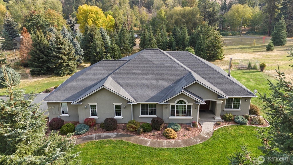 Discover this stunning, custom-built home situated on 4.72 peaceful acres with breathtaking mountain views. Designed for easy, one level living, this newer home combines modern luxury with the tranquility of nature. The floor plan features quality finishes throughout, including custom cabinets by Bechtel Woodworking, a large kitchen pantry, and light filled windows throughout. The outdoor space offers endless possibilities! From entertaining on your patio, to building your dream garden, or simply enjoying the peace, privacy and wildlife of your land. Top this off with a 40x60 shop with concrete floors and 4 roll up doors. Finally, there is room for everything! Call for your appt to view this ideal blend of comfort, style, and space!