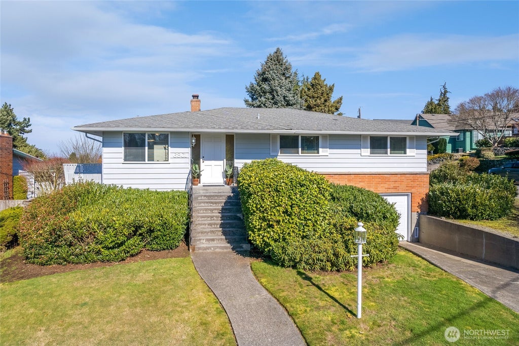 This beautiful turn-key rambler with a daylight basement offers four bedrooms, two+ baths, and hardwood floors on the main level. The kitchen boasts updated cabinets, and the home features two cozy fireplaces. Downstairs, you'll find a spacious family room perfect for relaxation. Step out onto the deck to enjoy partial views of the Olympics and Narrows Bridge, or unwind on the covered patio overlooking the meticulously maintained, fully fenced backyard. Additionally, a deep one-car garage provides ample space for a workshop or extra storage. This home is ready for your personal touch!