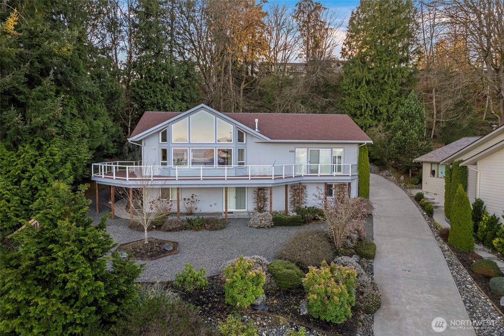 Panoramic Views of the Sound, Mount Baker & March Point. This quality-built 3562SF, 3BR, 2.5BA daylight rambler features a breath-taking vaulted great room w f/p, nice open kitchen w eating bar, & adjacent laundry/pantry room. You'll love the wonderful entertaining deck that wraps around the view side. Primary bedroom is vaulted w 5-pc bath, walk-in, office nook & access to the deck. Lower level has a fam rm with patio area, library/bedroom, & a 3rd bed w full bath. This quiet, end of cul-de-sac lot is beautifully landscaped with ez upkeep in mind, nice walkways & has an RV/boat pad next to the garage. Greenbelt behind the home providing extra privacy. For storage, there's a huge walk-in height area below. This one checks a lot of boxes!