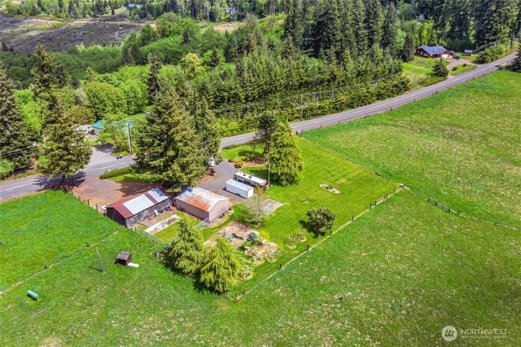 All utilities on this prime 26 acre property in sought-after Castle Rock! Two parcels offer prime future development potential, divisible into 2-acre lots. Enjoy a 24'x36' metal shop with a furnace and loft, plus a 24'x48' barn with power. 5 acres of 30-year-old fir trees, fenced & cross-fenced pastures with stock irrigation, and a picturesque tree-lined circular driveway. Features firepit, large garden, fruit trees, 15,000 ft.² of manicured lawn, & 2 sites with full RV hookups. Paved road access. Quiet & serene... Just 5 minutes from Silverlake for fishing and boating, 1 hour from Portland, and 2 hours from Seattle. Don't miss this rare opportunity to own a piece of paradise!