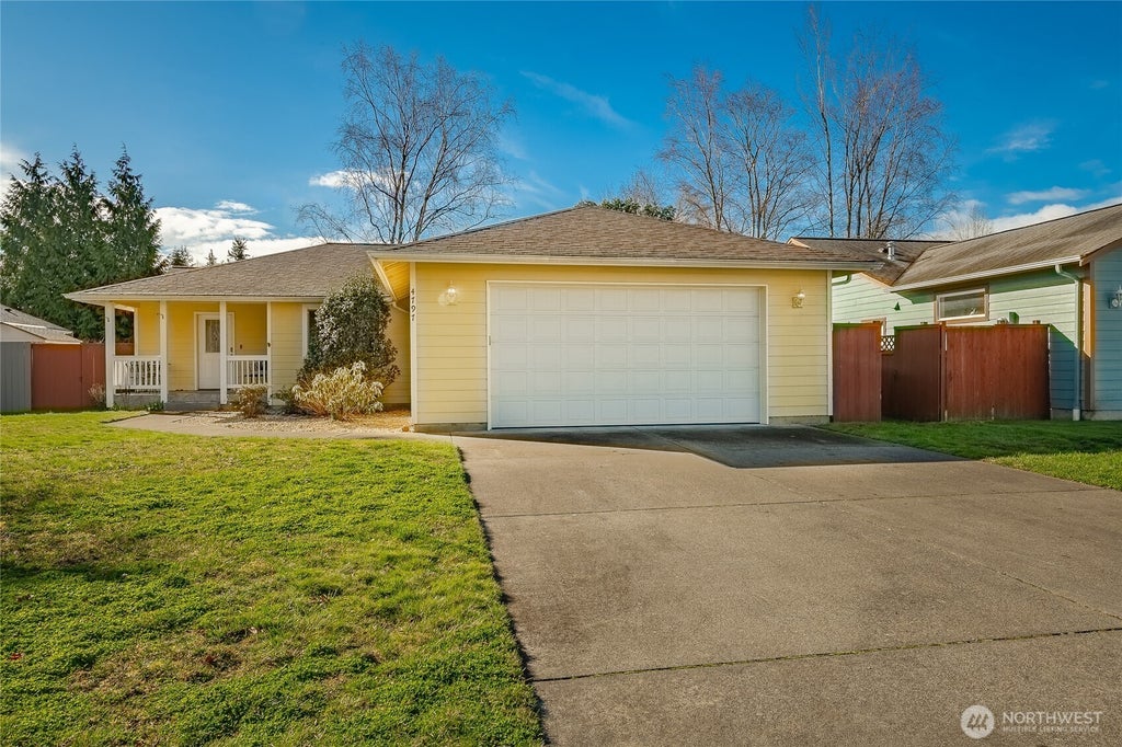Charming single-level home in a quiet cul-de-sac, just minutes from Blaine, Birch Bay, and I-5! Featuring an open-concept kitchen with new granite countertops, updated flooring throughout, and new heating and cooling systems. New roof installed in 2023. This home offers 3 spacious bedrooms, 2 remodeled bathrooms, and an attached 2-car garage leading into a large mudroom. Bright and airy with south-facing windows for plenty of natural light. Enjoy a covered patio and fully fenced backyard, perfect for BBQs and gardening. Across from greenspace full of birdlife, and near parks. A peaceful, convenient retreat!