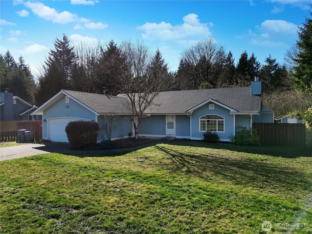 Nestled on a spacious .32-acre lot in the peaceful Curries Landing Community, this turnkey 3-bed, 2-bath rambler offers 1,346 sqft of comfort. Walk in greeted by the vaulted living room, complete w/ wood-burning fireplace. Kitchen offers ample storage and a charming solarium-style eating area. Head down the hall for a versatile office space w/ French Doors leading onto the large deck out back. Primary suite boasts an en-suite bath and 2 separate closets. Newer LVP floors (2023) and roof (end of 2022). Enjoy outdoor living w/ a fully fenced backyard and shed for extra storage. Attached 2-car garage. Just 25 minutes from downtown Olympia. Don’t miss out!