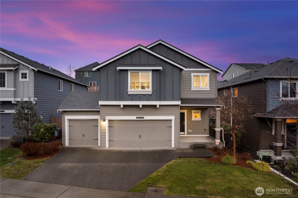 This beautifully updated Cambridge model offers spacious living with stylish upgrades throughout. The chef’s kitchen features a large island, a 5-burner gas stove, & sleek laminate flooring that flows through the dining area, kitchen, & nook. The KING-sized primary suite boasts a spa-like bath with a glass-enclosed shower. Upstairs, you’ll find 4 generous bedrooms, a versatile bonus room, & a convenient laundry room. Recent updates: racks in the garage, a new EV charger, fresh interior paint, and backyard enhancements with a covered patio canopy and elegant stone tile flooring, perfect for outdoor gatherings. A spacious 3-car garage provides ample storage. Located in the desirable Gateway community w/ easy access to shopping, I-5, and JBLM.