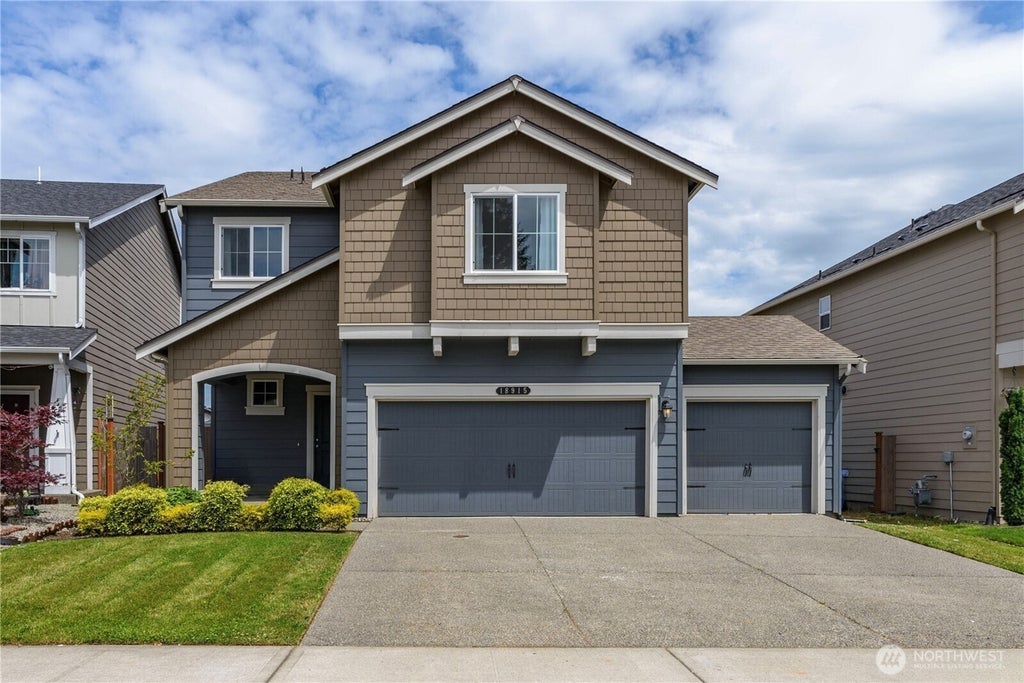 Welcome to Lipoma Firs Community! Where comfort and style come together seamlessly! Embrace the warm, inviting vibe that sets the tone for relaxation and enjoyment. Your open-concept kitchen feats a center island with bar seating, NEWER SS appliances & wooden cabinets, keeping you connected with guests. Quality laminate flooring & carpet throughout! Upstairs, enjoy to your private 5-piece Primary Suite with a walk-in closet and soaking tub. Spacious bedrooms w/ high ceilings feel bright and airy. Outside, enjoy the fully fenced backyard & patio—perfect for entertaining or unwinding. BONUS ROOM—possible 5th BRoom or Theater Room. Rare 3-car garage + a huge driveway for extra parking. Prime location near WA-161, shopping & more. Welcome Home!