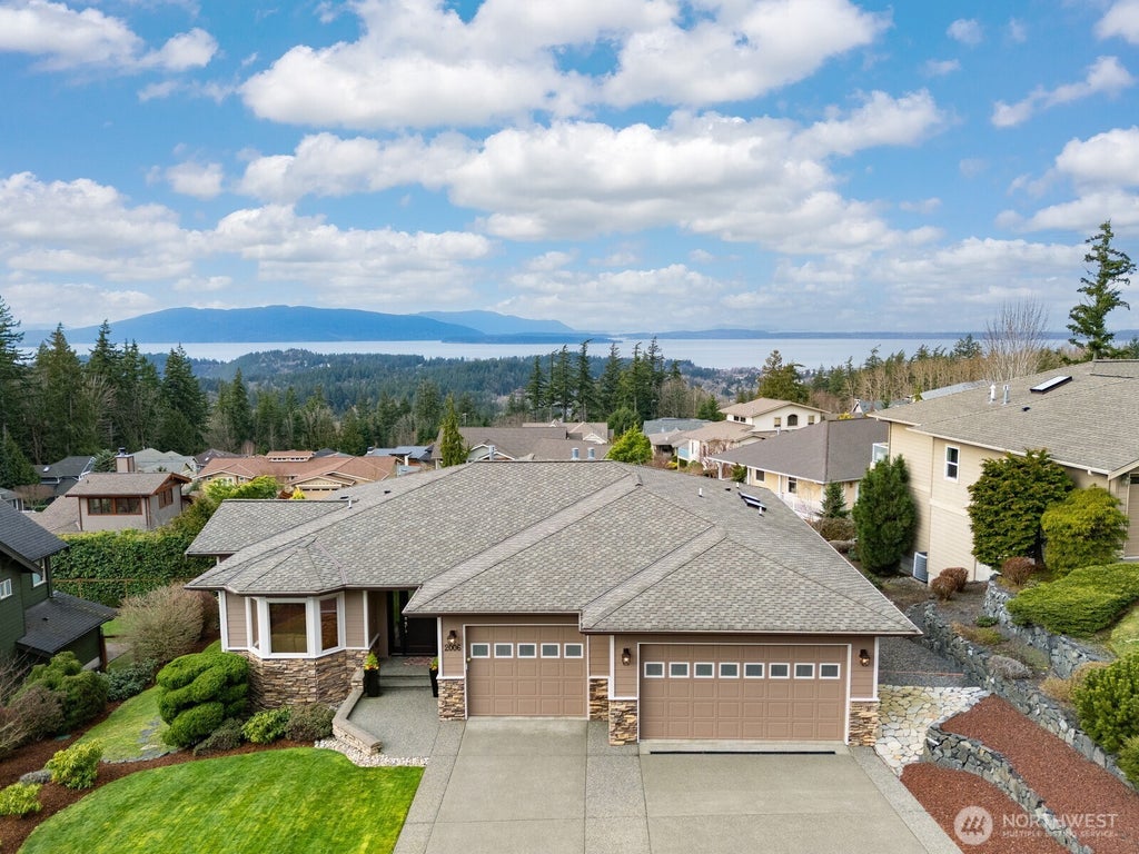 Luxurious one-level living with sweeping Bay & Island views in the sought-after Samish Crest neighborhood. Beautifully updated 4-bed 3-bath NW Contemporary home is in immaculate condition w/many upgrades. The main level's open layout flows seamlessly from the great room w/its cozy gas fireplace, to the chef’s kitchen featuring high-end appliances & cherry cabinetry. Primary Suite features a new custom tile shower, massive walk-in & access to the new Trex deck w/glass railing. 2nd full suite downstairs so guests stay in total comfort. Extras include a 3-car garage, Central AC, a soffited dry patio area, powered sun shades, heated floors in the Primary bath & so much more. Enjoy living w/ stunning views from nearly every room on both levels.