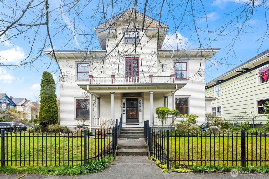 Discover an incredible investment opportunity! Step into history with this stunning 1905 Four Square home that blends timeless character with modern potential. This charming home features soaring ceilings, intricate moldings, and a rich wood Victorian stairwell. Main level leads to a den /office, lovely living room with pocket doors, dining room with built-ins and a huge kitchen with endless protentional. The second floor leads to 3 spacious bedrooms, a bathroom with a vintage clawfoot tub and an outdoor balcony, a spacious 3rd floor that's finished with a 4th bedroom & bonus room, detached garage and an unfinished 608 square foot basement with fairly new electrical & water heater. Located near shops & restaurants. This home is a must see!