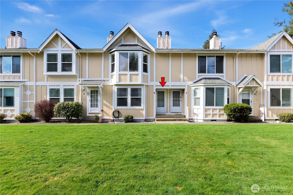 Located in the sought-after gated community of University Place, this Two Mountain View Place townhome condo offers comfort, convenience, and charm. This spacious two-bedroom, one-and-a-half-bath home is filled with natural light and features a generous kitchen, a cozy living area with a fireplace, and a primary bedroom with vaulted ceilings. Enjoy the beautifully landscaped grass yard between buildings, a private back deck perfect for soaking up the sun, and a peek-a-boo water view from the upstairs window with stunning sunsets. Complete with a covered parking space, this home is just minutes from top-rated UP schools, shopping, dining, and everything University Place has to offer. Come visit today!