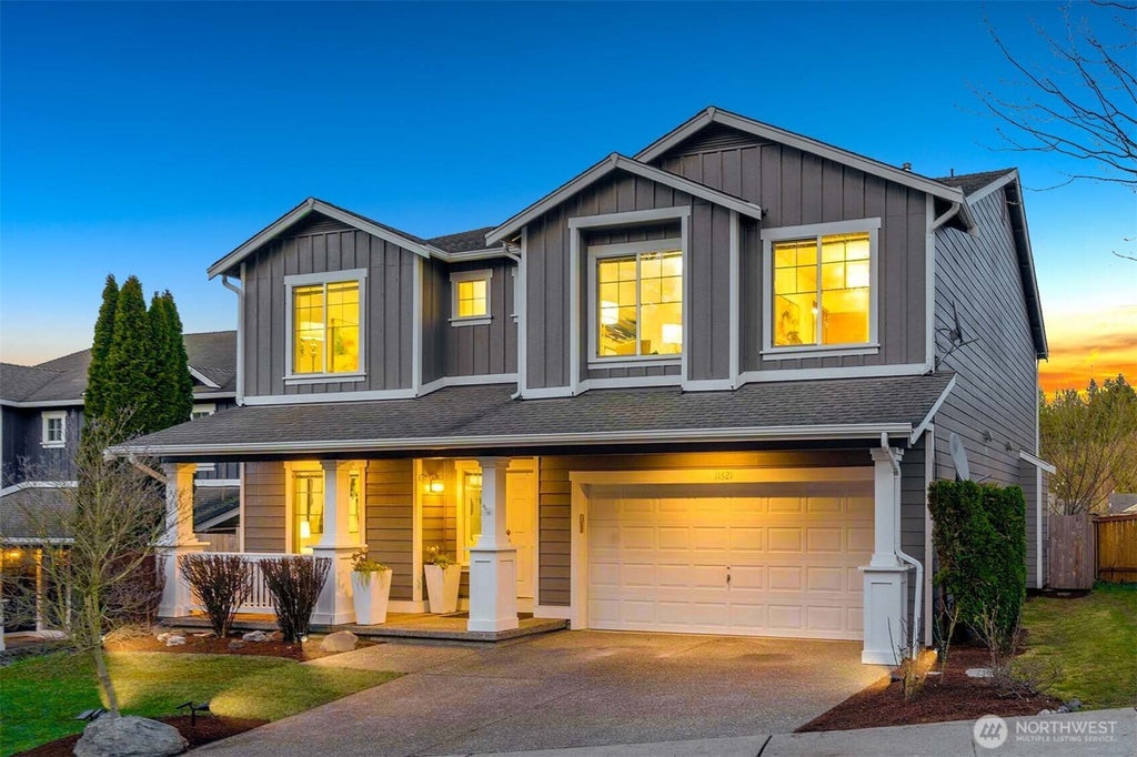 A beautifully designed home blends modern elegance w/ timeless appeal. Inviting entryway flows into formal living & dining. Gourmet kitchen boasts ss appliances, spacious pantry & chef-friendly island. It opens into a cozy nook & family room gathering at gas fireplace. Relax & BBQs on the patio & fully fenced backyard. Upstairs, the primary suite is a true retreat, featuring a large walk-in closet & luxury 5-piece bathroom. An open bonus room accompanies 3 more bedrooms & a refreshed full bath. Recent upgrades: int & ext paint, quartz countertops/backsplash, luxury vinyl plank flooring, bath cabinets, LED lighting & new lawn. Nestled in a community surrounded by green belts and open fields, only 10 minutes from Mill Creek Town Center & I-5.
