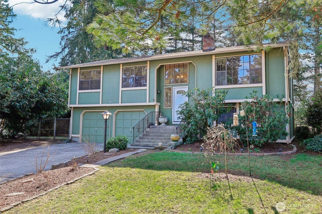 Welcome to your freshly updated split-level home in the quiet Spanaway Park neighborhood featuring a modern kitchen with quartz countertops and stainless steel appliances. Upstairs you'll find the primary bedroom with it's own private bath, plus two additional bedrooms and a secondary full bath. On the lower level you'll find a fully refreshed finished basement with a half bath. Don't miss the extra bonus room in the garage with a closet. A large 2 car garage holds all your toys. Step outside to a large deck perfect for entertaining and a fully fenced almost half acre backyard for your pets. Mature landscaping creates a shaded, private retreat to relax and unwind. Some photos are virtually staged.