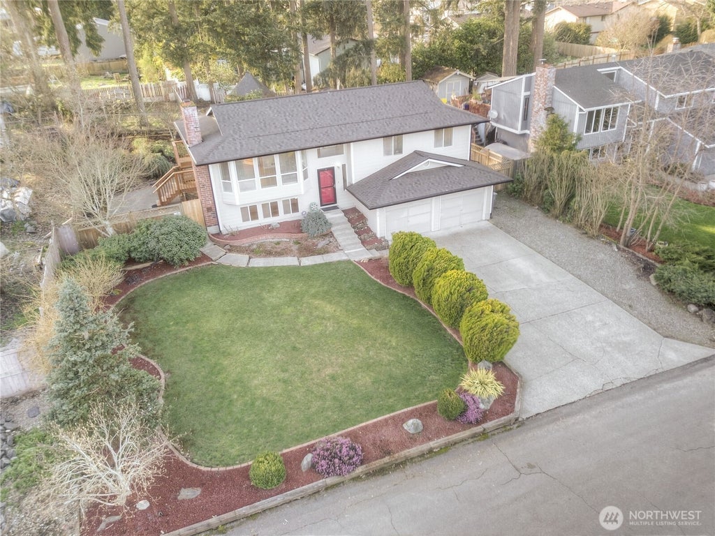Welcome to your wonderful new home in Tacoma, sitting on a large landscaped lot, just minutes from all amenities and JBLM. This 3 bedroom, 2.5 bathroom split level home features a thoughtful floor plan and all necessary major updates. The main level boasts hardwood floors throughout the living & dining room w/slider leading to a brand new wood deck overlooking your beautiful terraced backyard, perfect for entertaining. New LVP floors in the kitchen, bathrooms, and lower level. Other valuable updates include a new 50 yr roof, Leaf Guard gutters, SS appliances, large kitchen farm sink, lighting throughout house, high end blinds, all interior doors, new paint, trim, & carpet in primary. Enjoy the large bonus room w/fireplace downstairs.