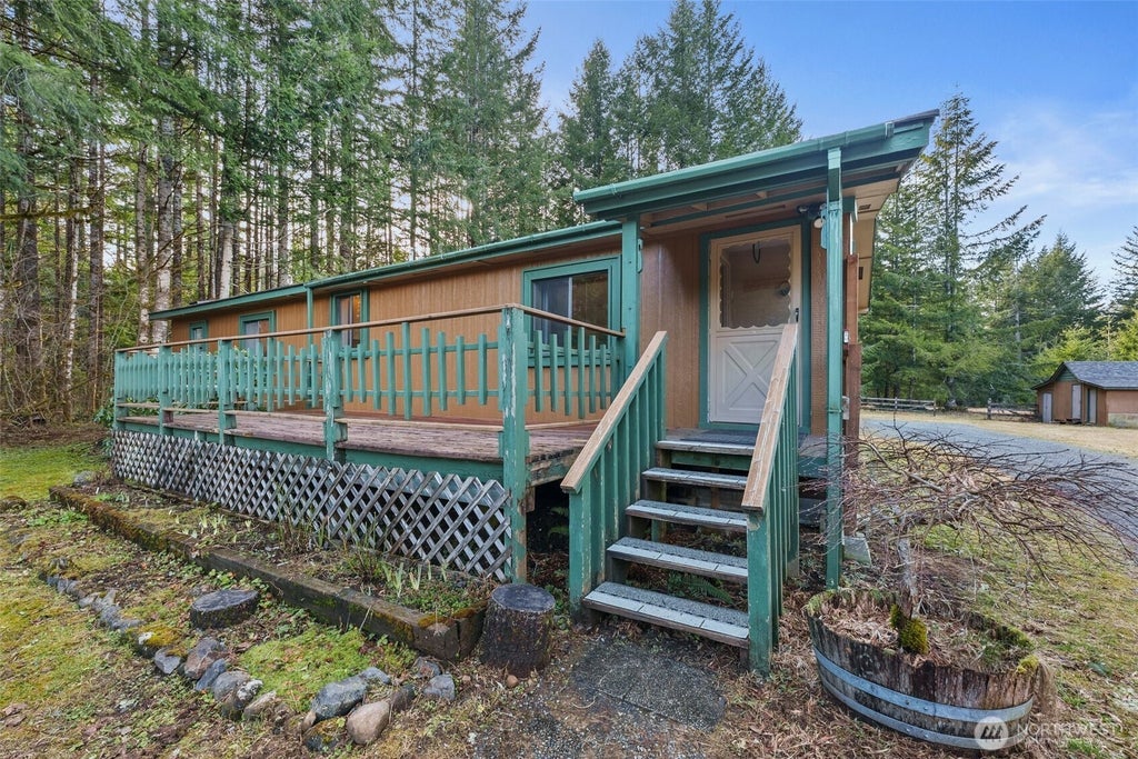 Charming 2 Bedroom, 2 Bathroom home on 5 beautiful acres with Shop. Home features open concept living area with abundant natural light. Potential to build a main home while using & keeping the existing home as an ADU (buyer to verify). New Roof 2015. New Bosch Dishwasher 2024. Primary Bedroom with ensuite bath. Spacious second bedroom. Large utility room with built in desk & cabinets. Large detached shop, additional shed & garden space. This property offers plenty of space to spread out, whether you're looking for a private residence, a hobby farm or future development potential. Located 8 minutes out of Elbe & 15 minutes to Mt.Rainier. Close to hundreds of acres of DNR land, ORV trails, fishing, hiking & endless recreational opportunities.