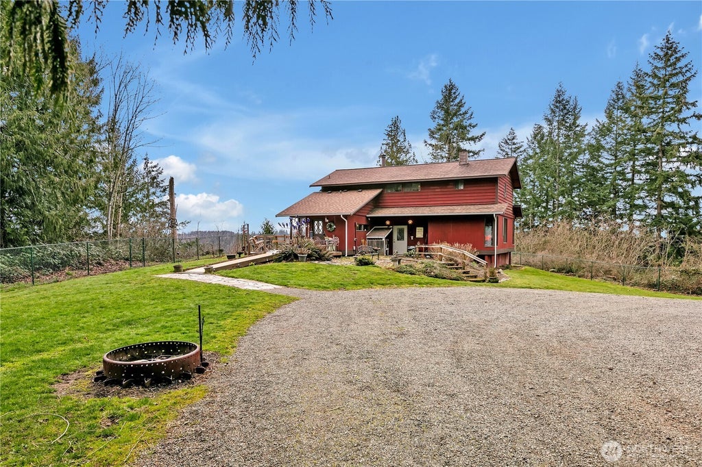 Amazing privacy with an amazing Mt. Rainier view! Large 3-BR home w/ an extra large finished room (i.e. Bonus Room). Open beams in the living room, dining & kitchen. Main bedroom with attached bathroom. There is also another bedroom on the 2nd level which has an ensuite bathroom. Gigantic shop/garage for all your toys which is 1,800 Sq. Ft (30' X 60') Circular driveway. Barn is 21' x 22', firepit, large deck, raised bed garden space, open area to roam! RV parking! Wood shed too! Come see this amazing property!