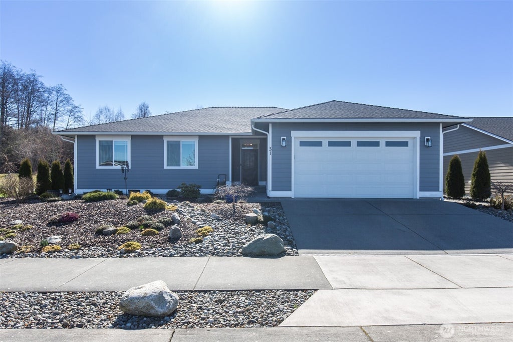 Newer quality built one level mountain view home in desirable Sequim neighborhood close to all Sequim amenities! Lovely open concept living/kitchen floor plan with large windows facing south to let natural light in. Kitchen has beautiful quartz countertops, plenty of cabinets with soft close drawers and cabinets, pull out drawers, custom trash and recycling cabinets and a large island and breakfast bar for three. Enjoy a private dining room for yourself or for entertaining guests. Sunny and bright south facing bedroom with a bathroom that is a retreat in itself, offering a dual sink vanity, a luxurious tiled shower and additional storage. Experience year-round comfort with two efficient ductless heat pumps for both heating and cooling.