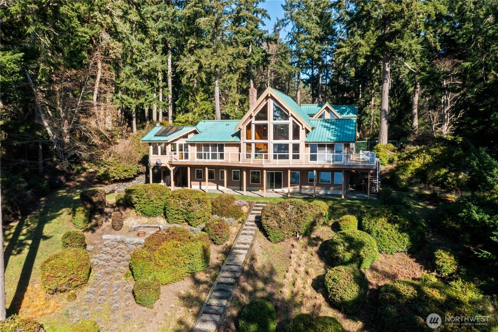 A legacy estate awaits! This magnificent waterfront residence boasts 275' of high-bank frontage on 3.17 acres. Enjoy unparalleled privacy in this breathtaking natural setting at the tip of Treble Pt. With over 4000+ sq ft of luxurious living space featuring an incredible main floor primary suite w/ updated 3/4 bath, walk-in closet, & attached Solarium. Downstairs, 2 addt'l bedrooms w/ 3/4 bath, extra large den/office, wet bar, family room, & cedar sauna. Take in extraordinary views from the loft or get creative in bonus space + half bath over the 3-car garage. Delight in the gourmet kitchen/bar +1500sq ft wraparound deck to entertain guests. Manicured grounds, a path to the beach & stunning sunsets complete this picture-perfect property.