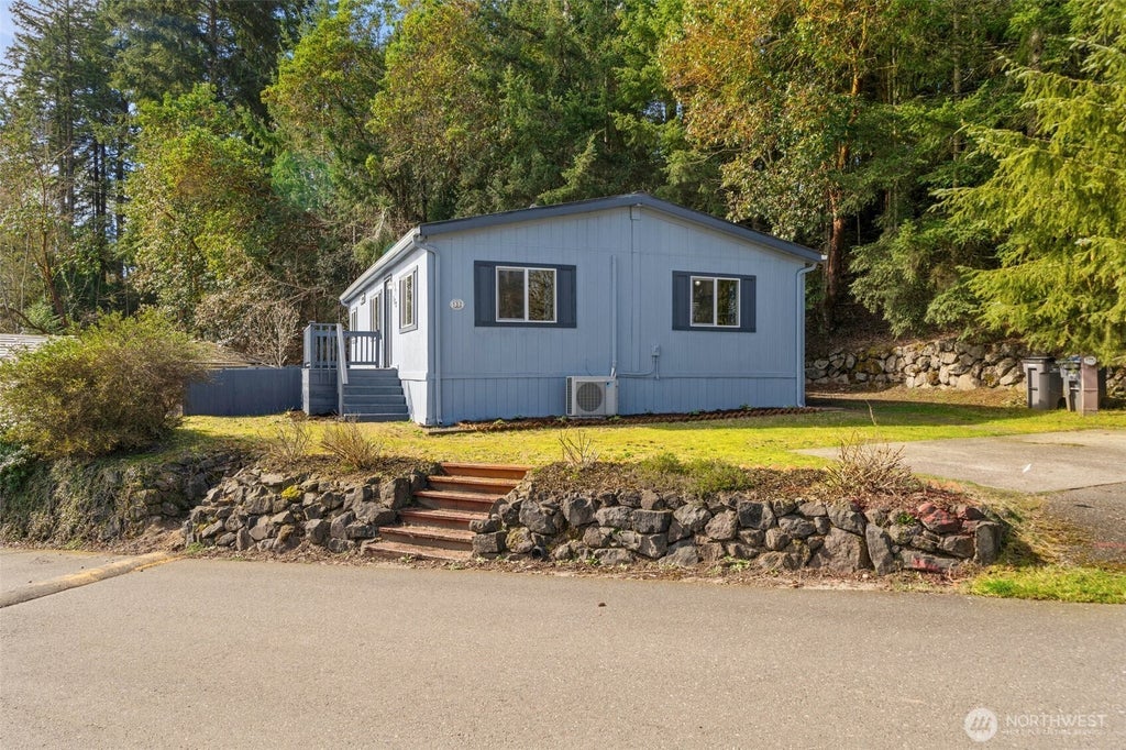 All ages welcome! Located in East Bremerton, this well-maintained, affordable 3-bedroom, 1.75-bath home has vaulted ceilings, easy-care laminate and vinyl plank flooring, and a light and bright kitchen. Mini Split heat pump was installed in 2019 and new windows just installed. The primary bedroom has an attached ensuite. You'll love relaxing on the attached deck. Located in Camelot Mobile Estate Park, this home is in a great location. Tucked away with a greenbelt behind the home, it feels secluded. Plus, it's close to schools and shopping, downtown Seattle Ferry, Puget Sound Naval Shipyard, Bangor, and Keyport.