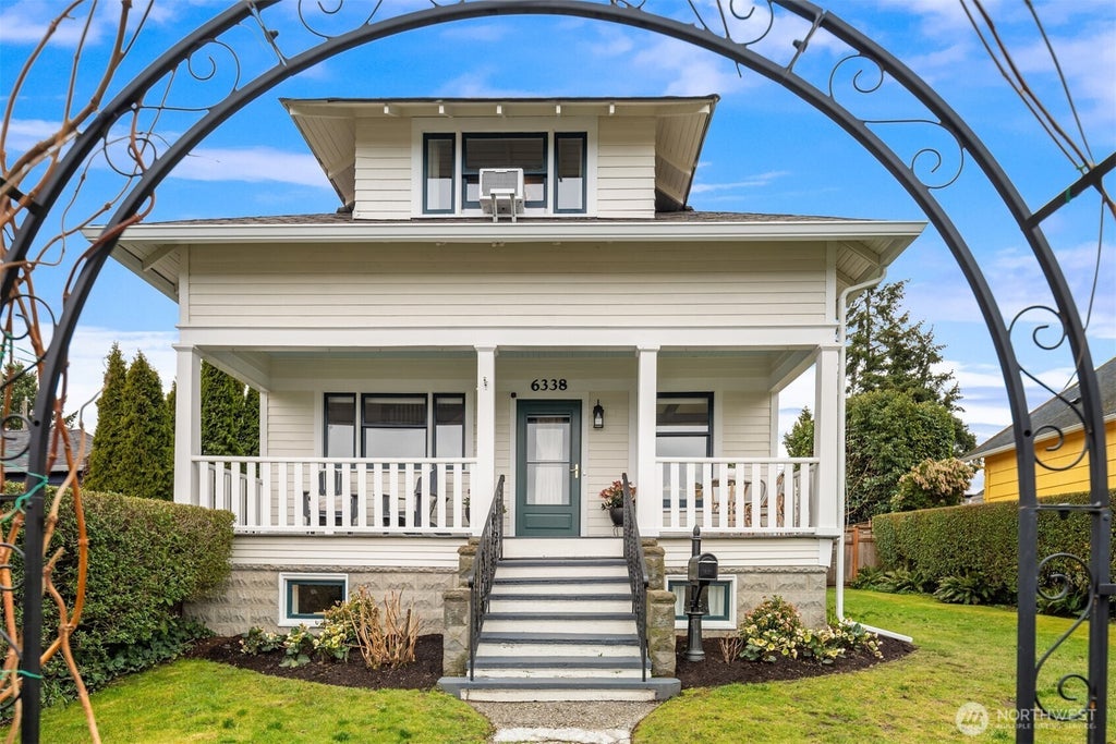 First time offered in nearly 80 years, you'll bask in the romance of this classically updated 1920 3 bed/2.25 bath Craftsman home. Showcasing box beam ceilings, gorgeous inlaid hardwoods, window seating and a formal foyer. West-facing, relish the Sound + Olympic views, along with evening sunsets from the front porch. A 2022 studs-in whole house remodel updated kitchen, wiring/plumbing and added 3/4 bath. Electric heat pump + gas furnace keep you cozy along with AC too! Partially finished basement w/bonus room + 1/2 bath; additional basement access might provide an ADU option? Searching for a great yard? Yes! Fully fenced and level, offering privacy + garden beds. Imagine the summer BBQ's here at home! Convenient one car garage off alley.