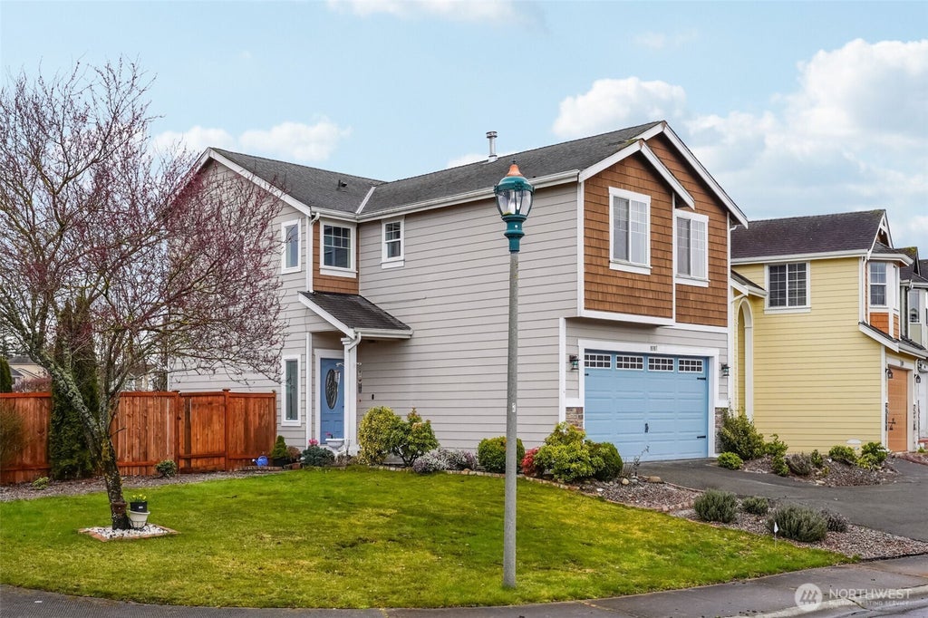 Welcome home to the beautiful master-planned community of Lipoma Firs. And welcome home to your updated 4 bedrooms, 2.5 bath spacious home with all important things taken care of to give you peace of mind - granite counter, brand new vinyl planking downstairs, and new carpet upstairs. New furnace and water heater in the last 3 yrs. Upstairs, relax in your large main bedroom w/5-piece bath and deep tub, and enjoy glorious Mt. Rainier views. Extend your living space out onto the back patio with a gazebo for shade in the heat and barbecuing in the rain. There's fruit trees too. Gated entrance to the side of your property is parking space for your boat, trailer, or any other toys. 3-year home warranty included. Includes roof and re-keying!