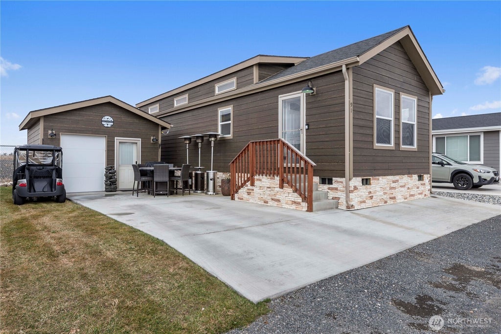 Fun in the SUN! Golfers Dream! Beautiful Newer Home in Golf Cart Community. Discover this stunning 1 bedroom, 1 bath home, perfect for a summer getaway, located in the welcoming Colockum Ridge. Packed with numerous upgrades and thoughtful additions, this home offers all the niceties of a big home in one convenient package.Upgrades: Black Walnut Cabinets, Quartz Countertops in Kitchen and Bath, Luxury Laminate Flooring Throughout. Spacious Loft for Storage or Guest Quarters. Stick Built Golf Cart Garage with Remote Garage Door and Built-In Bar for Outdoor Entertainment or storage. Community pool, clubhouse, golf course access, gated, RV parking. Near wineries, Columbia River, hiking, fishing, clubhouse restaurant!