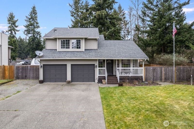 Remodeled Fir Ridge shy .5 acre lot. Kitchen with quartz and stainless. Cabinetry, doors, flooring, trim and millwork all updated. Brand new interior paint and carpet. Modern bathrooms have quartz counters, tiled floors and shower surrounds, updated fixtures. Main level beautiful solid surface flooring that enhances the home's aesthetic, good flow in the living spaces creates an inviting atmosphere and wood burning fireplace formal dining / living. Expansive fully fenced backyard w deck perfect for BBQ, pets and outdoor entertainment. Covered front porch, garden boxes, new storage shed. Secured gated RV parking & oversized driveway create extensive parking for vehicles or guests. Don't miss the opportunity to make this one yours.