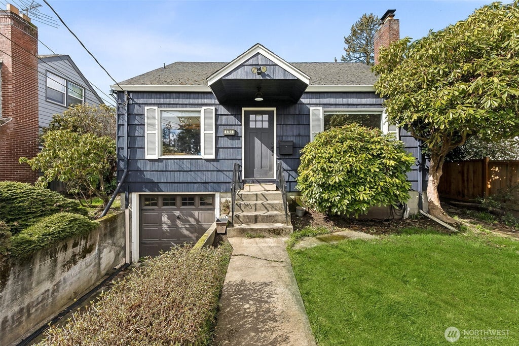 Charming and updated home with modern touches and classic character! Featuring a newer roof, fresh exterior paint, and original hardwood floors. The fully renovated main-level bath boasts subway tile, a new vanity, fresh paint, and stylish tile flooring. The kitchen includes ceramic tile, a newer dishwasher (2021), a new faucet, and a garbage disposal. Enjoy vaulted ceilings, a security system, and a spacious 930 sq. ft. unfinished basement. The backyard is fully fenced with mature landscaping, fruit trees, a covered patio, and a concrete pad. Plus, a newly added garage door and a 1-car tandem garage for convenience!