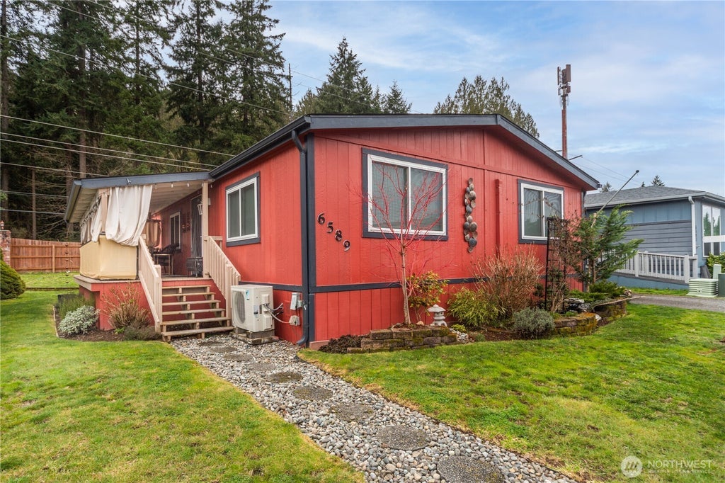Enjoy Premier Senior Living! Come relax on this large covered front porch. Updated 1344 SF, 3 bedroom, 2 bath home with an open floor plan. Kitchen has a huge island with breakfast bar & new stainless appliances. Washer & Dryer included. Ductless heat pump, vinyl windows and updated plumbing. Spacious primary bedroom with ensuite bath has walk-in shower with tile surround. Nicely landscaped, garden beds, raspberries, blueberries, strawberries and goose berry plants. 2 storage sheds. Silverdale Estates is a 55+ community with a clubhouse, indoor swimming pool, hot tub, sauna & more. Close to shopping, restaurants & medical facilities.
