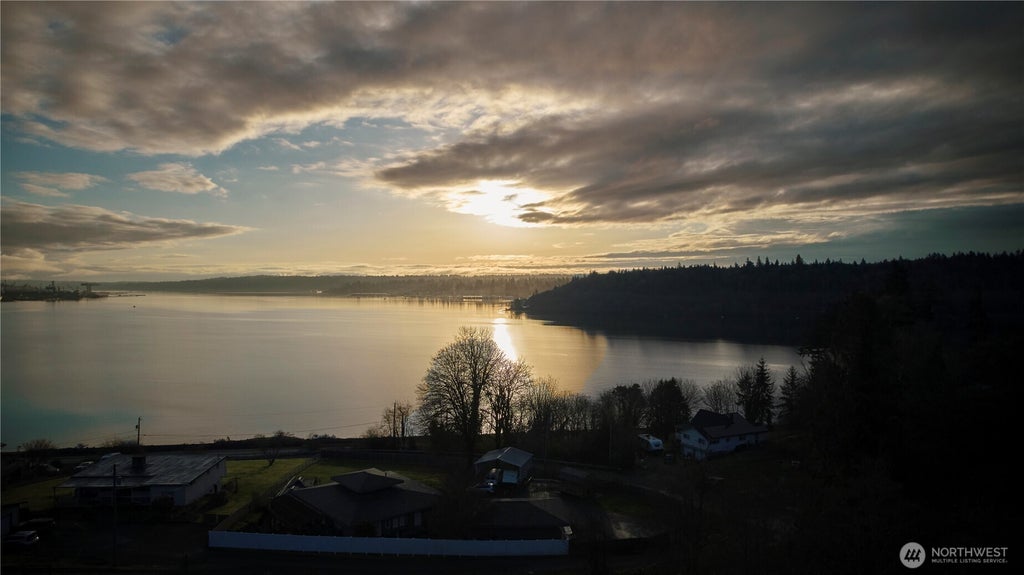 Breathtaking water views from this charming, private retreat, close to everything. Original hardwood floors and a spacious layout designed for comfort. Classic galley kitchen flows into a dining area & inviting living room with a freestanding wood stove for cozy winter nights. Mini-split system for year-round comfort. Large windows frame the stunning view. Primary suite offers French doors leading to a relaxing hot tub with a view. Walk-in closet with built-ins, a soaking tub, and an oversized shower. Heated floors in master bath and kitchen. Expansive back deck is perfect for entertaining. Shop provides ample storage or workspace. Detached dwelling unit—currently a thriving furnished short-term rental—offers fantastic income potential.