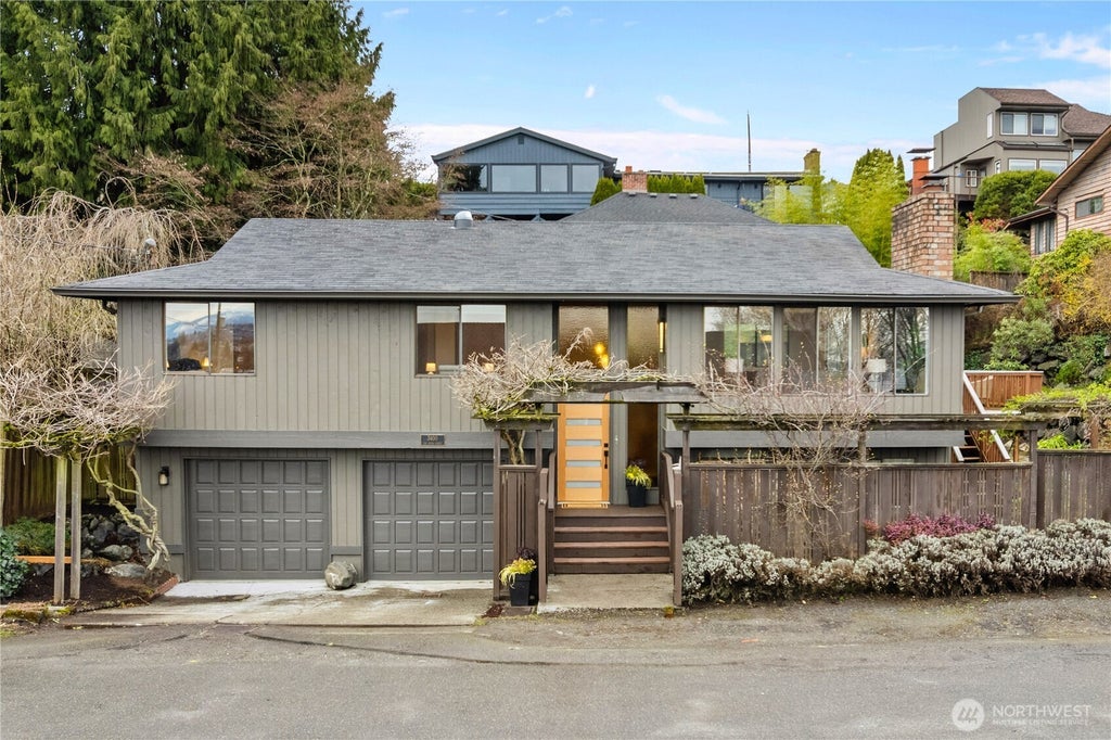 Nestled on a quiet street, this beautiful NW Contemporary offers both a peaceful retreat & convenience to all that is West Seattle. Ample year-round natural light throughout. Upper level has generous living/dining/kitchen, primary bdrm w/dual closets & ensuite bath, 2 add’l bdrms+full bath. Lower-level w/lrg family rm, ¾ bath & laundry—ideal for multigenerational living. Oversized 2 car attached garage & roomy shed provide plenty of storage space. Sweet “secret garden” yard with composite deck & mature landscaping. Recent updates include heat pump (heat+A/C), electric car charger outlet, int/ext paint & lighting. Located in a friendly neighborhood that feels remote yet provides easy access for commuting. Preinspected & sewer scoped.